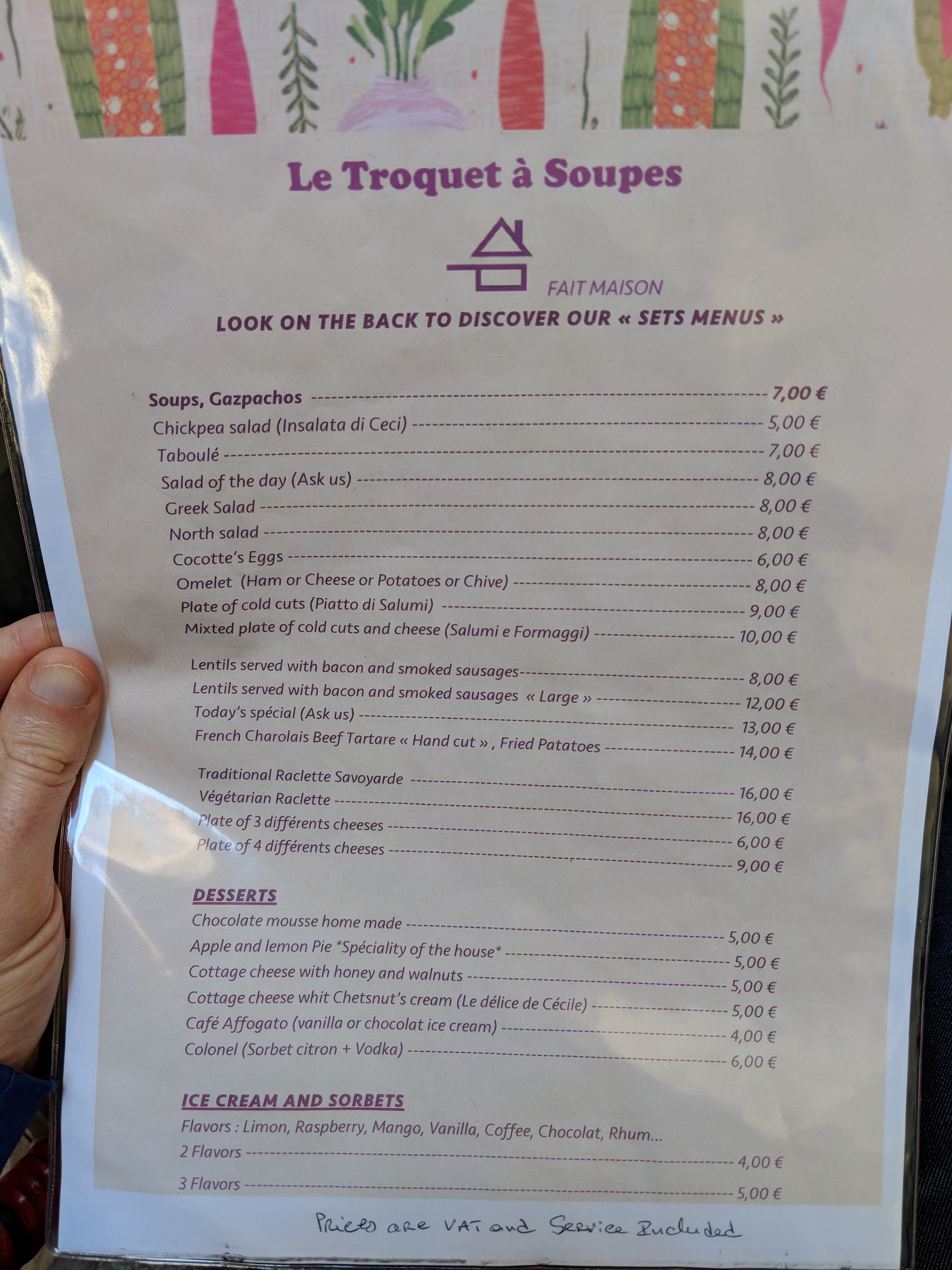 Prendre des plats à la saveur authentique. Dispatcher les sur une carte aux idées originales. Enlever les prix excessifs de la région et saupoudrer de raisonnable. Servir le tout avec une grande humanité. Voilà la recette du Troquet à Soupes.