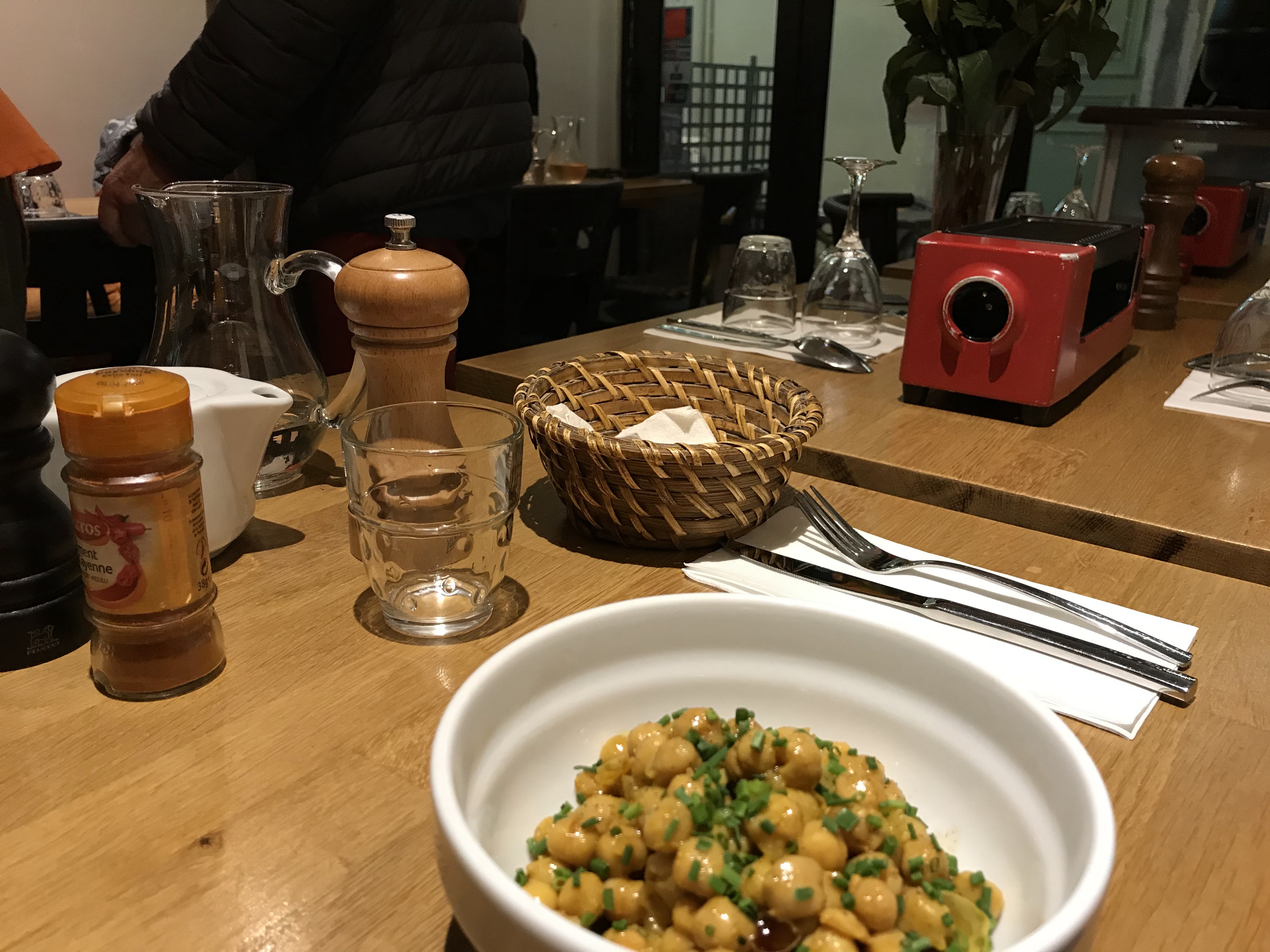Un bar à soupes (...chaudes l'hiver et froides l'été en gaspacho) avec d'autres plats de charcuteries. Une cuisine simple et pas chère dans un espace intimiste avec 5 tables. Ambiance romantique, calme. Deux personnes tiennent le restaurant : une navigatrice de la mer qui a posé les pieds sur la terre ferme et qui s'occupe des repas avec son amie au service des clients.. A découvrir ! (Ouvert depuis mi-avril 2016).