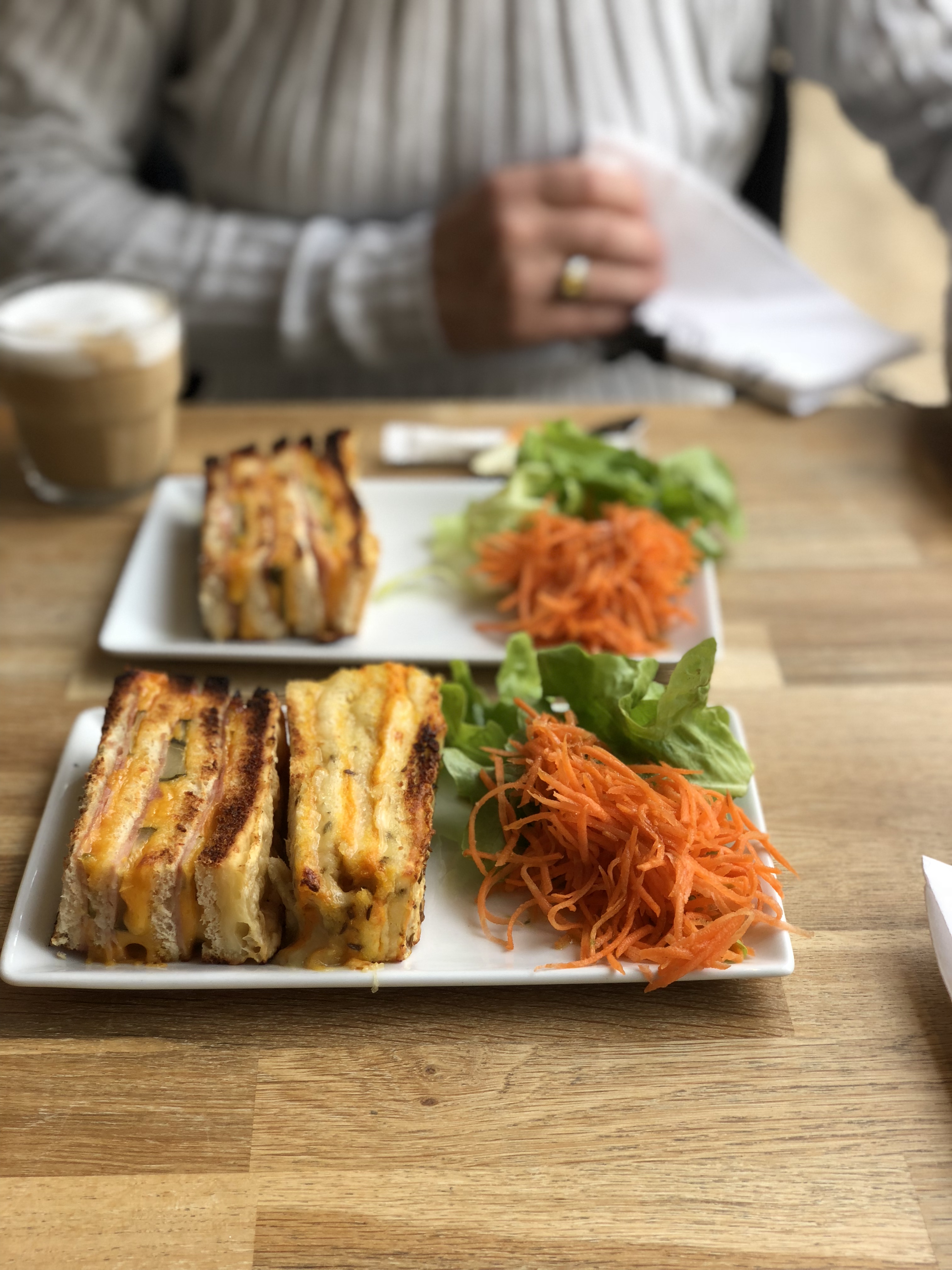 Super endroit pour déjeuner. J'ai eu le club sandwich au poulet et au bacon accompagné de beaucoup de laitue et de tomates, délicieux. J'ai également bu un verre de limonade faite maison avec du gingembre, suivi d'une tranche de sablé maison recouverte de caramel, de chocolat et de cacahuètes. Le service était excellent (m'a aidé en parlant anglais). Les tables étaient un peu bondées, mais le lundi midi était assez calme. Hautement recommandé.