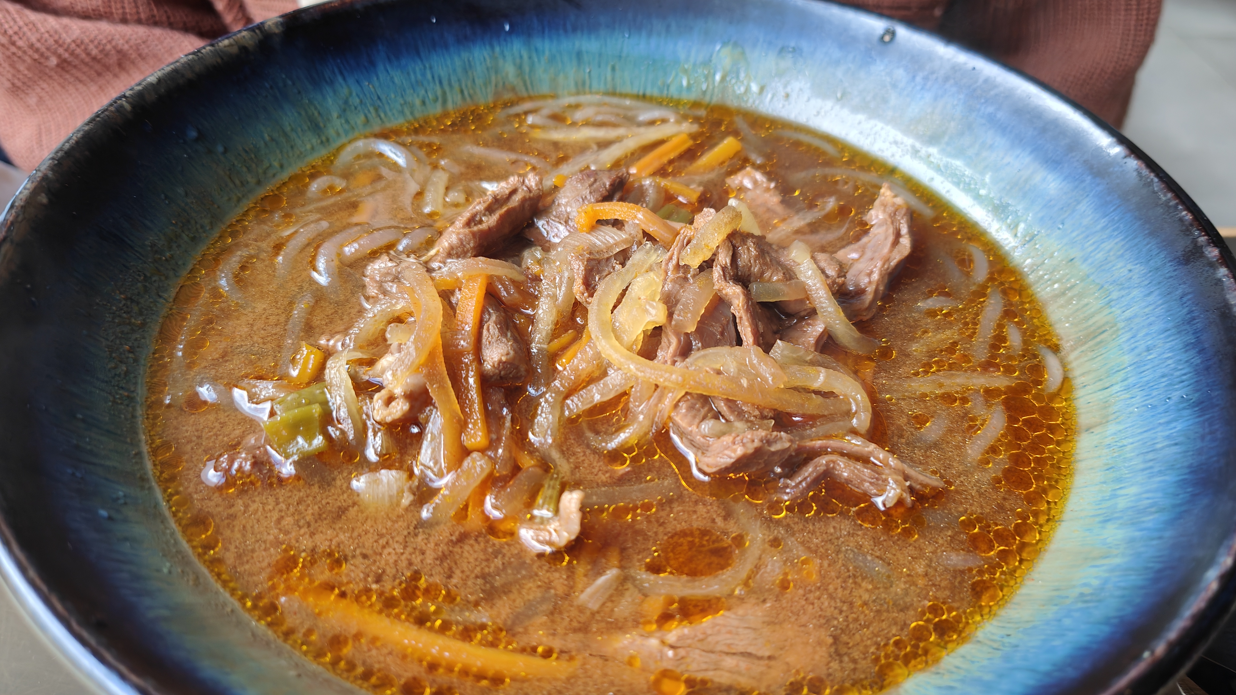Je viens d'essayer une soupe corénne froide. Ce goût particulier de la viande de bœuf dans un bouillon mais très bon. La viande est de qualité et pas surcuite. Avec tomate concombre et radis noir Excellent . C'est pas gras . Pas lourd . Je recommande vivement !